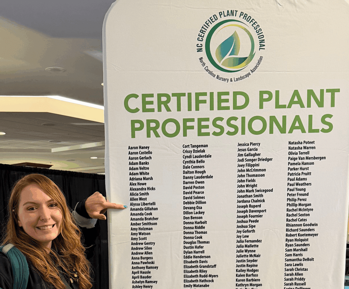 Upon arriving at the Sheraton Four Seasons, Kat and I paused to reflect on an important milestone. Last year at Green & Growin’, we earned our Certified Plant Professional designation through the NCNLA, and this year it was especially rewarding to see our names proudly displayed on the board at the entrance to the event.